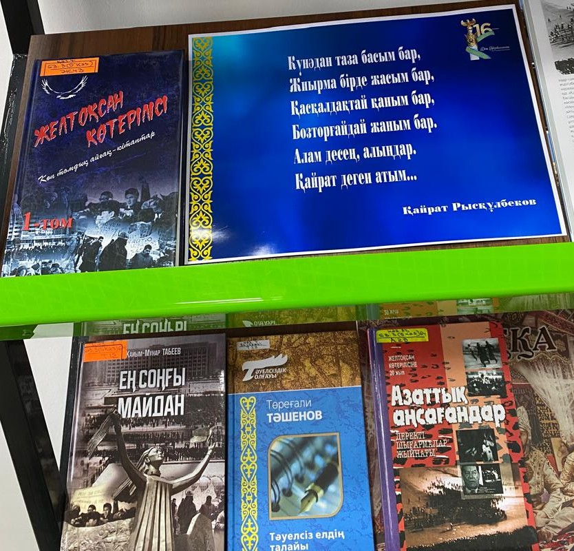 10 декабря Акмолинская областная универсальная научная библиотека имени Магжана Жумабаева отдел обслуживания читателей — сектор читальных залов подготовили информационную выставку «Ар намысым, мақтанышым –Желтоқсан».