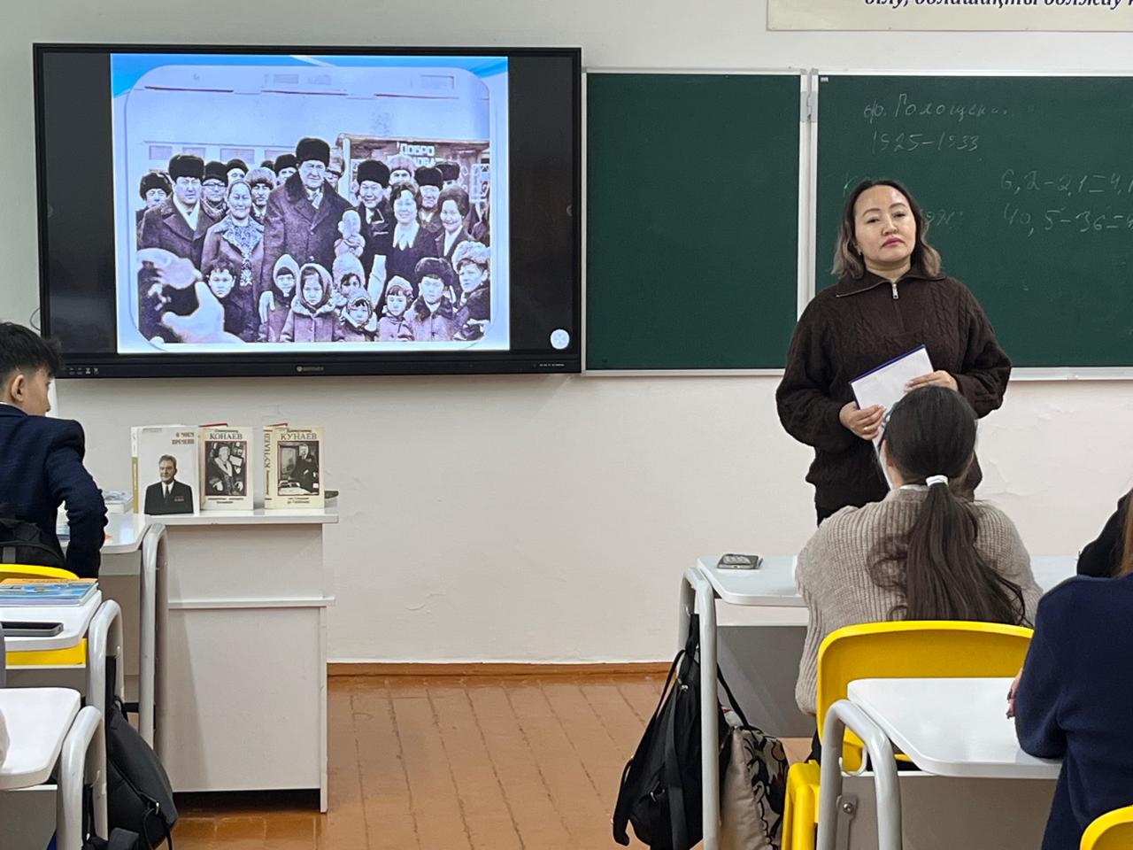 12 января Акмолинская областная универсальная научная библиотека имени Магжана Жумабаева организовала исторический вечер «Ел мақтайтын нар тұлға», посвященный жизни и деятельности Динмухамеда Ахметовича Кунаева. Цель мероприятия: популяризация вклада исторической личности и его трудов в развитии страны. Гостями мероприятия были учащиеся общеобразовательной школы № 12.